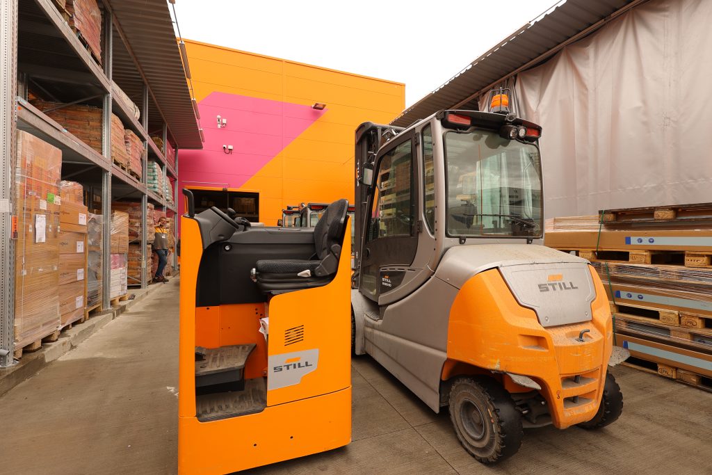 Deși era doar ora 10 dimineața, magazinul era deja plin de viață. Clienți veniți pentru materiale de construcții, alții în căutare de produse pentru casă sau grădină — o adevărată forfotă. În spate, în zona de recepție marfă, stivuitoarele STILL lucrau neobosite, asemenea unor furnicuțe: ridicau, transportau, organizau. Totul într-un ritm impecabil. Cel mai frumos era să vezi oamenii din spatele utilajelor — zâmbitori, implicați, parte dintr-un mecanism care funcționa perfect.